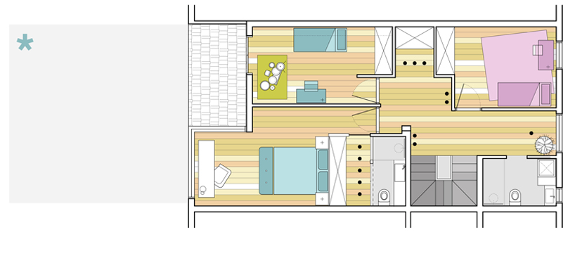 routes, rises through the core of the design. these functional spaces